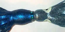 At this point, you’ll have one skirt on properly (hopefully) and one inside out and completely covering the lure head. The skirt tails will be pointing in opposite directions. Don’t forget the eyes!! Whichever way you laid the eyes on the inners skirt should be how you lay them on the outer one.
