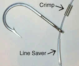 You should now have a hook looped onto your leader with linesaver and a crimp holding it all together.
