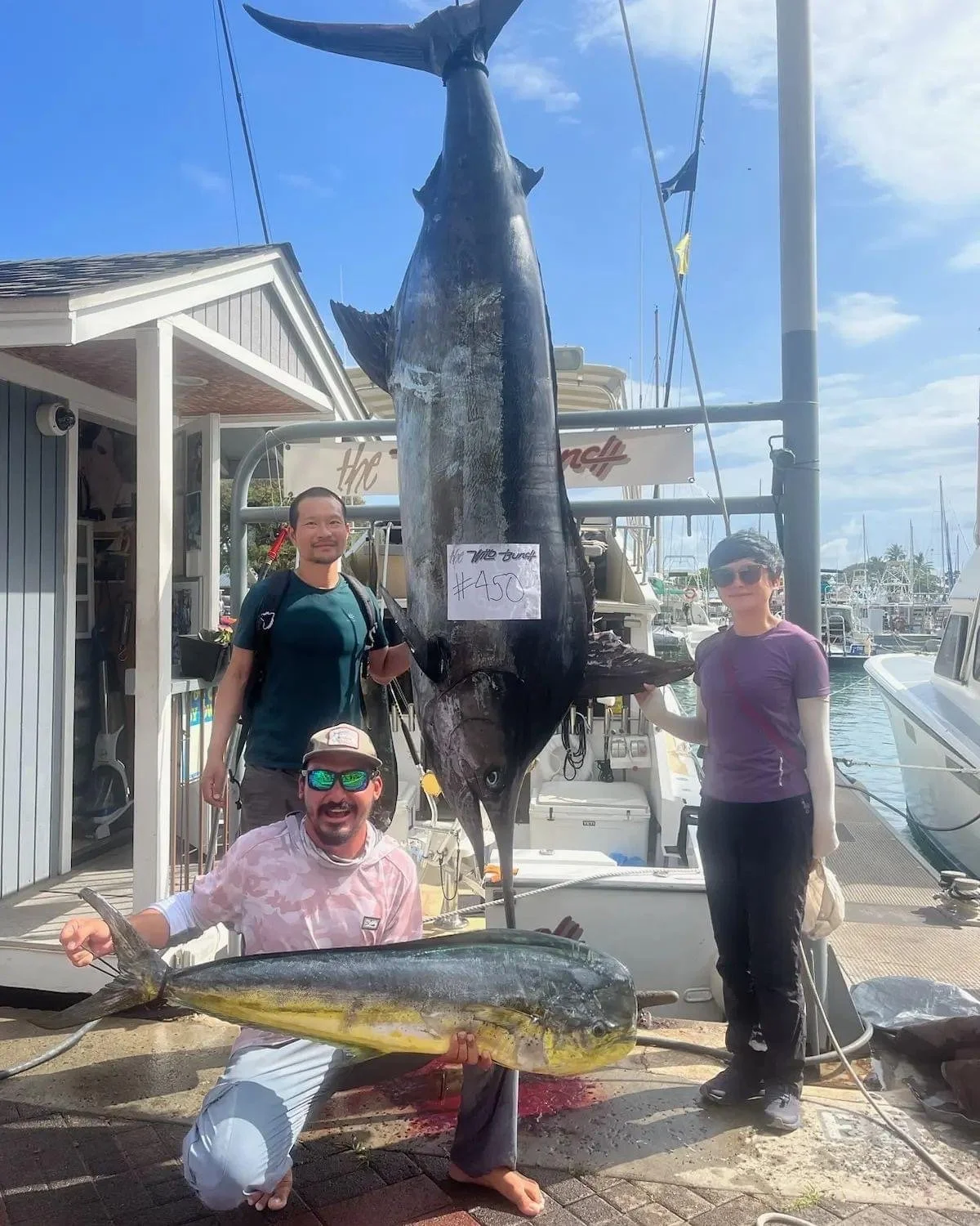 The 450lb Marlin above and Mahi Mahi were caught on the boat Wild Bunch at the end of April. So far in May we have had reports of some nice Ono (Hawaiian for Wahoo) as well as Mahi Mahi and some smaller Marlin. May is generally prime time for Ono so look for some nice Ono catches this month. Summer is almost here when the Blue Marlin and Ahi bite is usually at it’s best. Bass fishing on Kauai was interrupted several times in May due to flooding thunder storms on the island that brought brown water down the river so Tom was not able to get out as much as he liked. Waters have cleared up now so fishing should get good again.