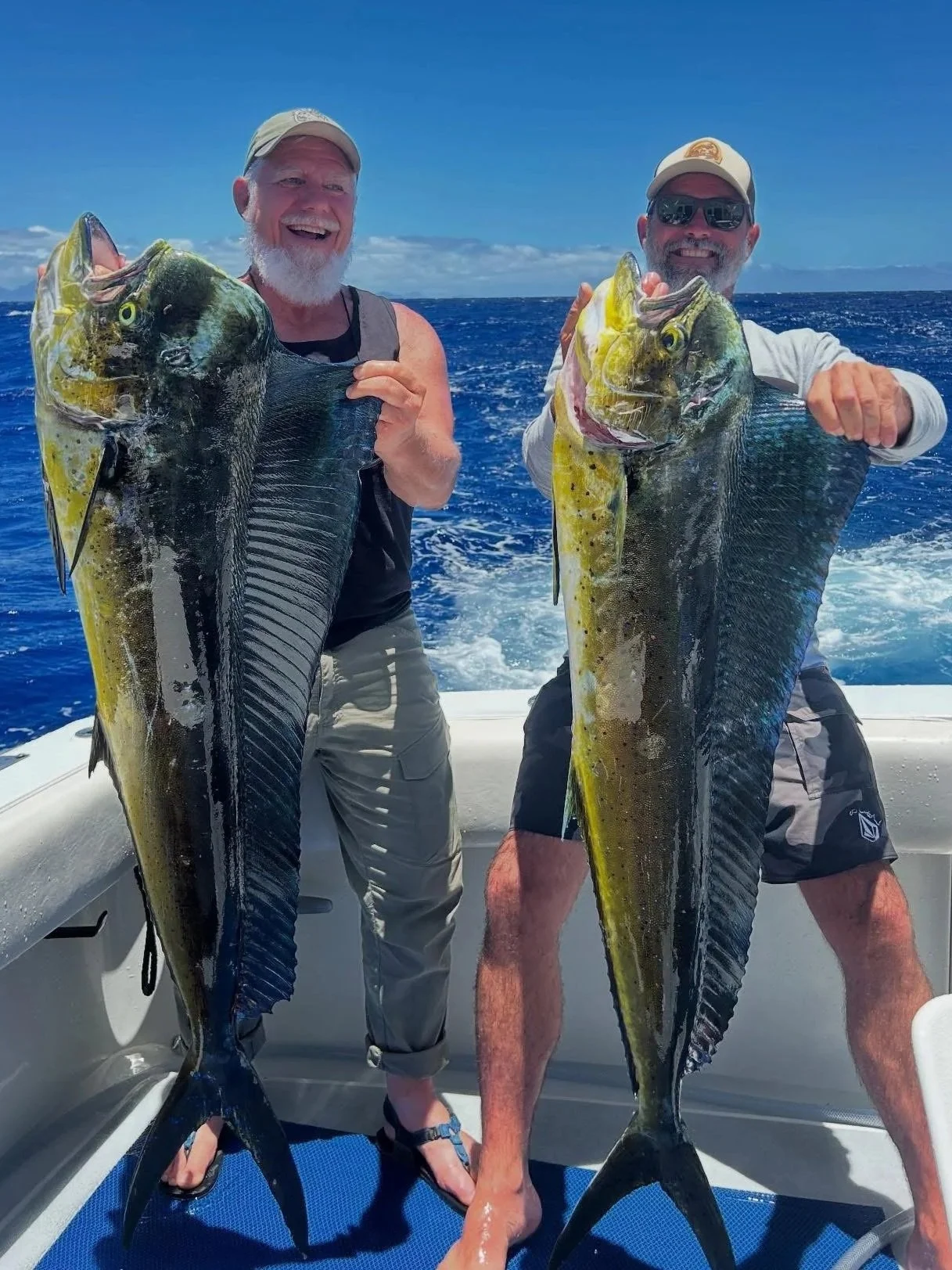 As expected April was a great month for Mahi Mahi! Spring is usually our best time to catch Mahi’s and they did not disappoint. Boats reported multiple catches, one got 20 of them. Sizes ranged from 15lb to 30lbs. Some nice Striped Marlin where also caught in the 60lb range. Striped Marlin are also usually around during the spring months. Going into May we should continue to see Mahi Mahi as well as the Ono bite which tends to pick up in May. On Kauai Tom has been catching good sized large mouth bass with some around 5lbs. Peacock bass have not been biting yet, they generally bite more in the warmer summer months.